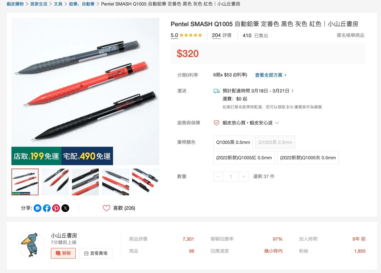 如果大家也想要試試Q1005的穩如老狗(反正就是很穩不鬆動)的書寫體驗,歡迎到我們的賣場選購喔!