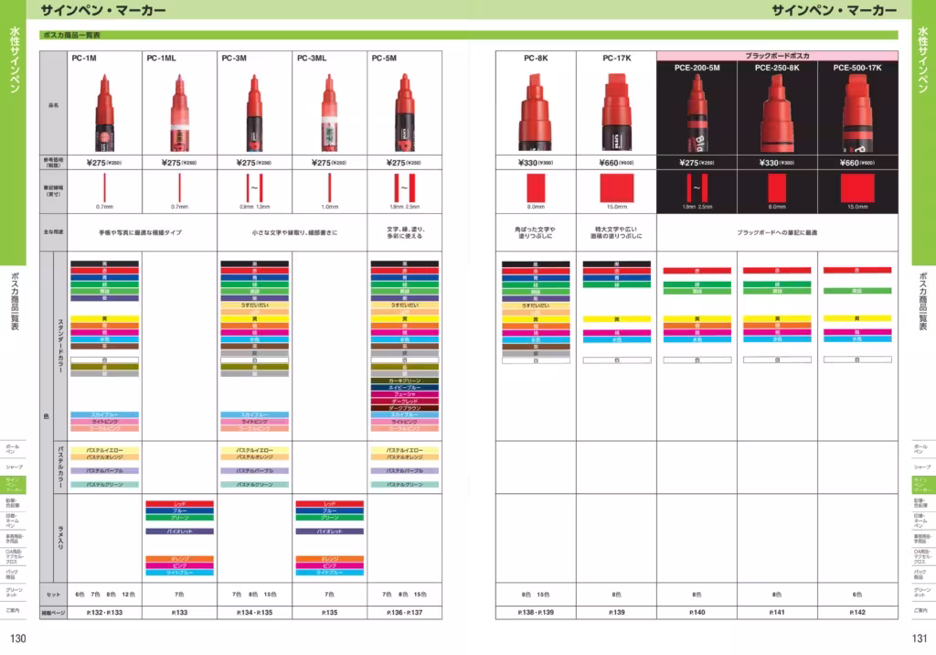 本篇介紹的是基於日本版的POSCA,現有(2025.11)的產品線可以看uni官網的目錄。