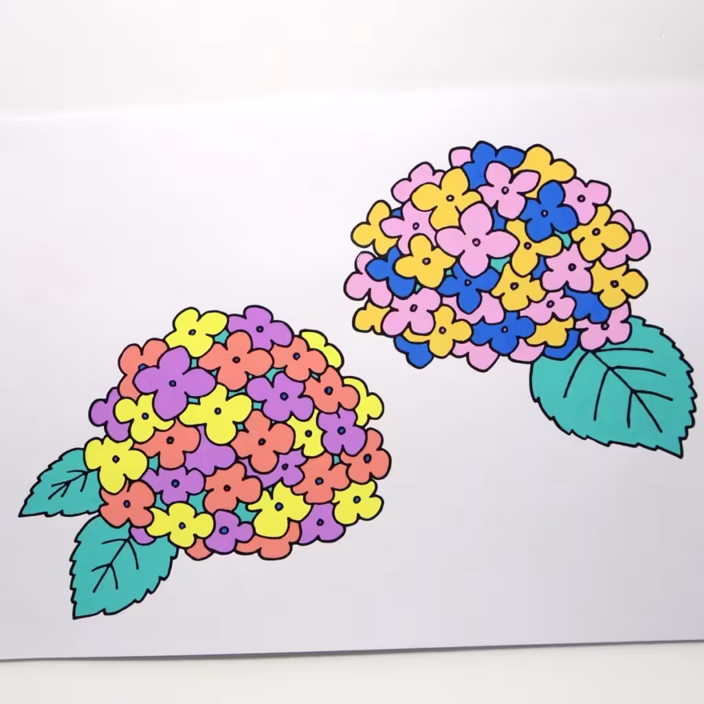 這裏附上一些小山丘書房老闆實際使用的圖。像是用PC1M7C 粉色七色組塗色的繡球花。
