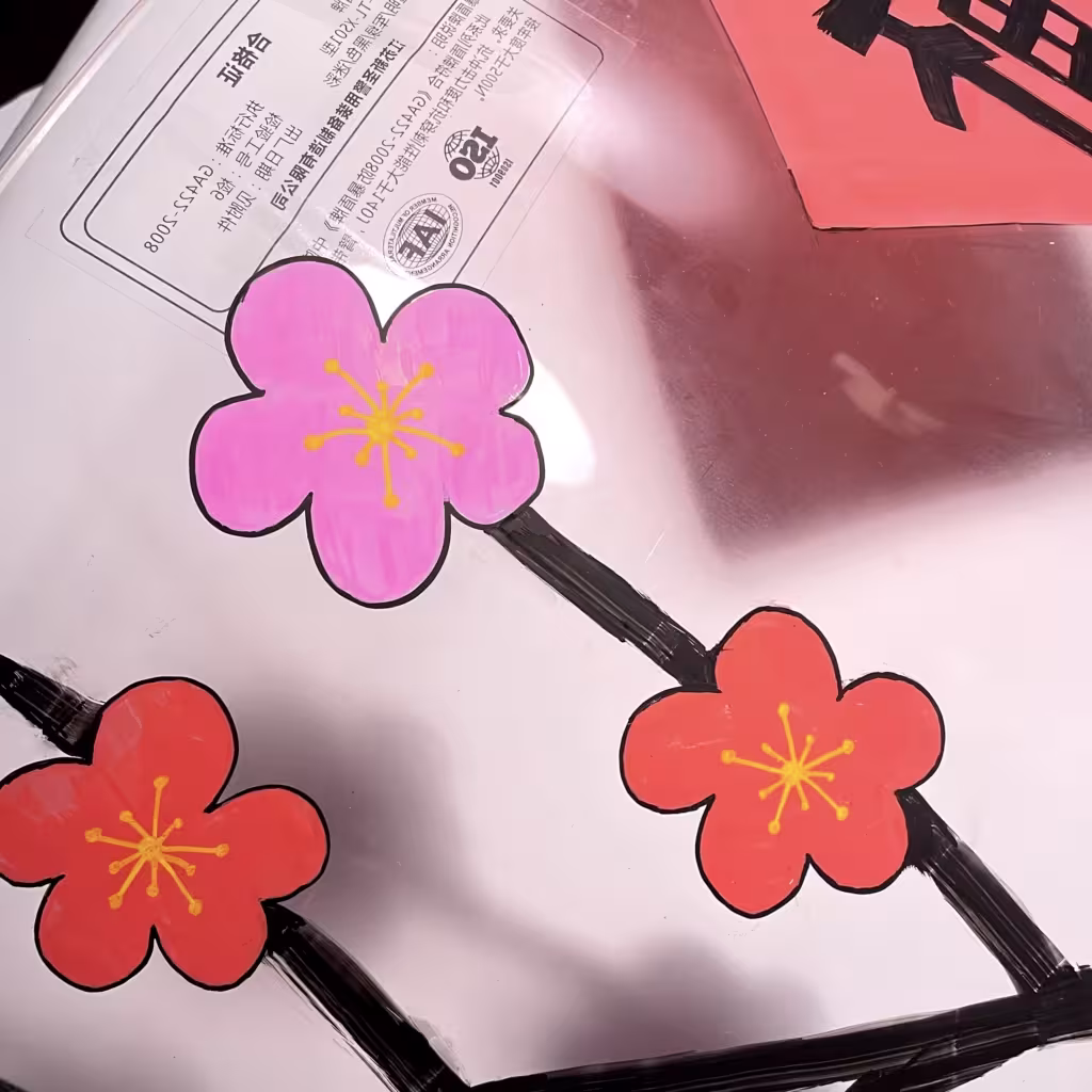 POSCA還有一個特點就是,在金屬和塑膠*上面也可以有很好的表現!像是幾年前老闆的朋友也用了POSCA在塑膠盾牌上畫畫,效果很好啊!(右上角的紅色福春聯也是用POSCA畫上去的喔!)